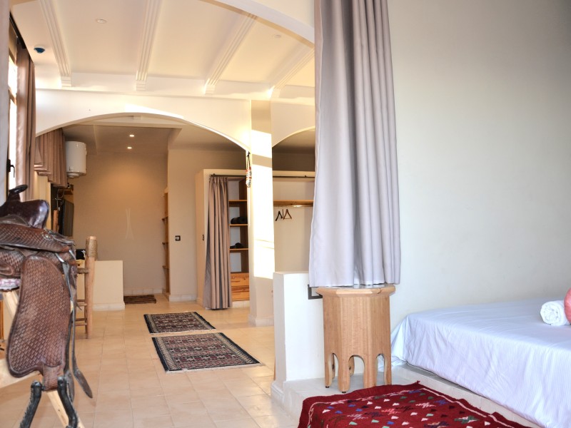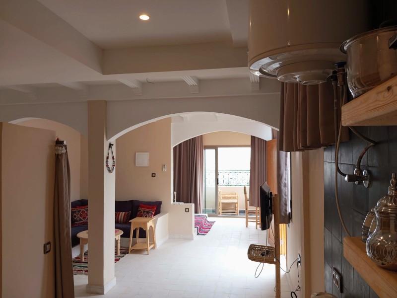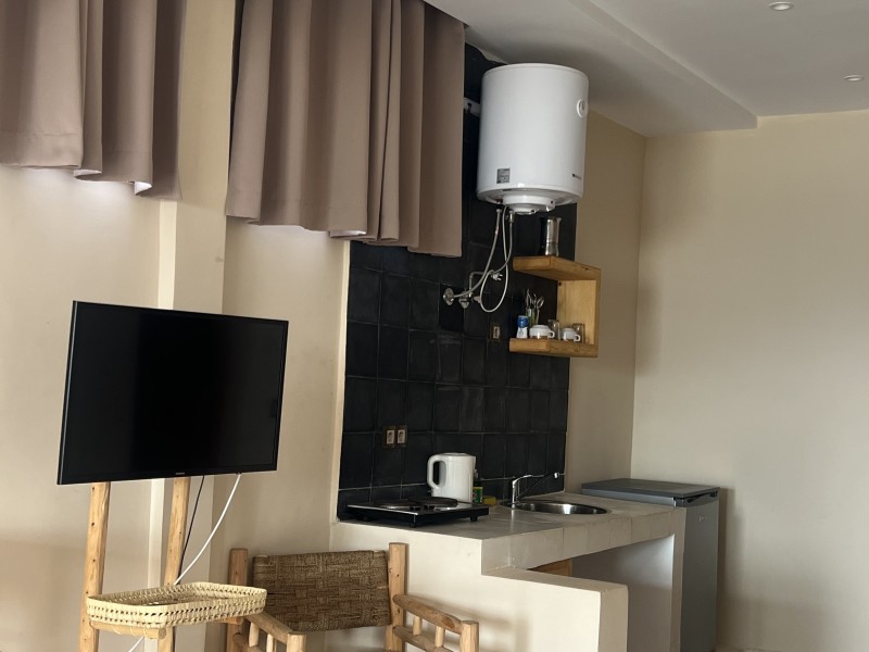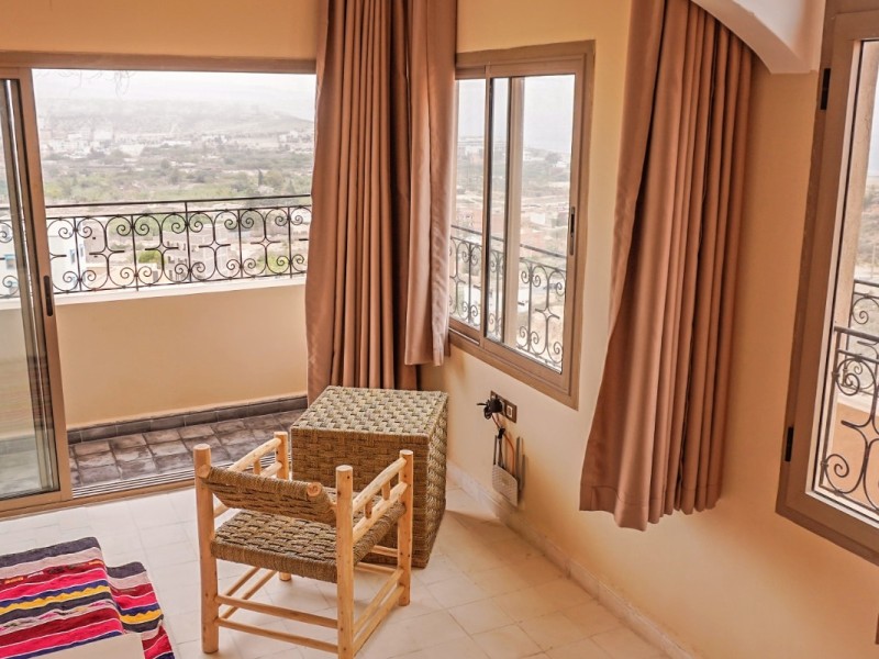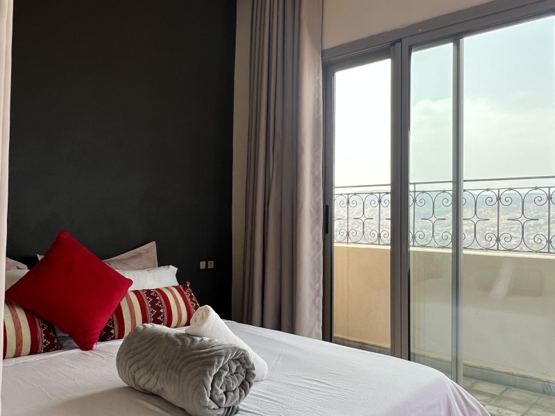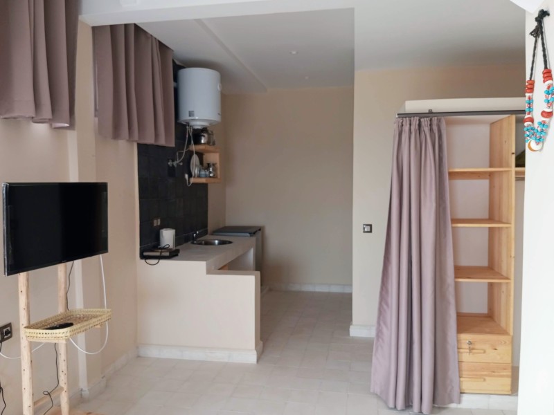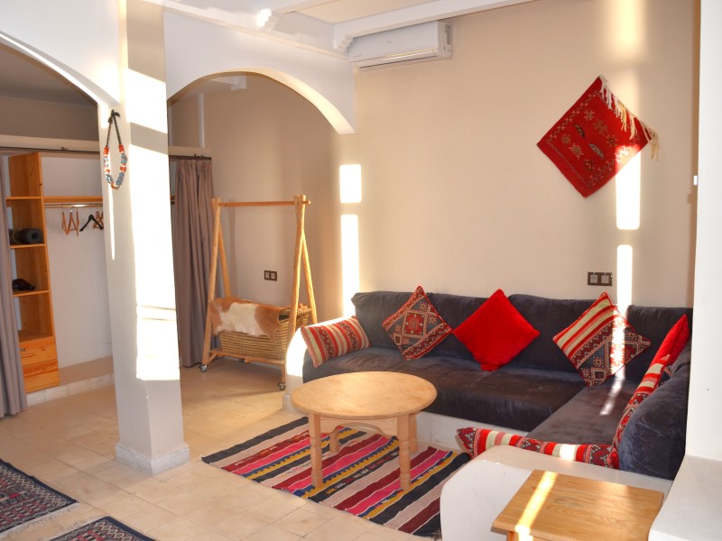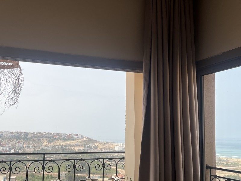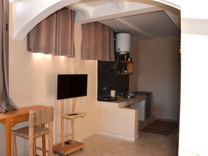 A spacious Moroccan-style apartment with authentic charm, large windows and a private balcony overlooking breathtaking ocean views. It features a double bed, salon with sofa & TV, fully equipped kitchen, small fridge, private bathroom with shower . Enjoy modern comfort with high-speed Wi-Fi and a work desk, perfect for remote work. Ideal for couples, families, and surfers. Breakfast (included in the price) is served on the rooftop terrace, the perfect spot to start your day with a beautiful ocean view.